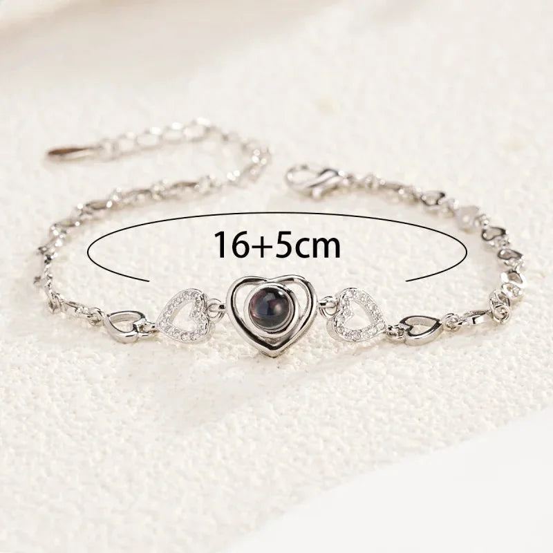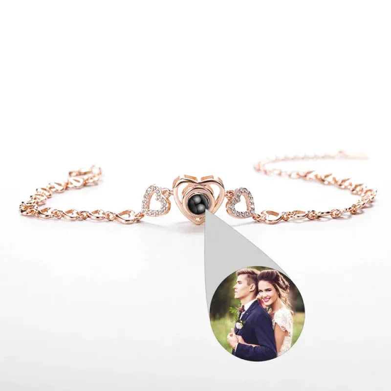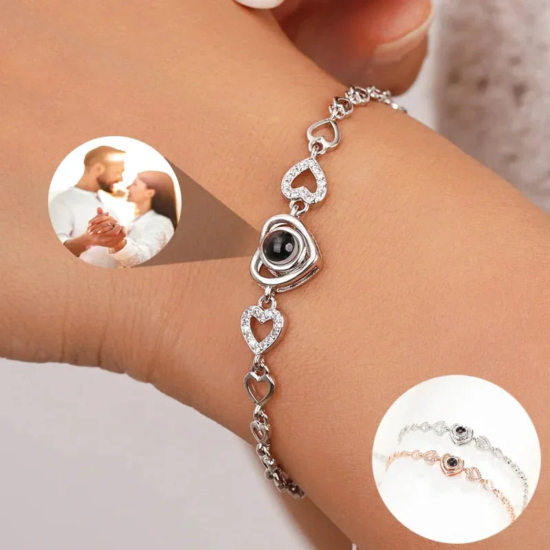 C'est magique et simple. Il suffit de regarder à travers la pierre centrale ou d'utiliser la lampe de poche de votre téléphone pour projeter l'image sur un mur. Vous transformez instantanément votre poignet en une galerie privée pour revivre vos souvenirs les plus précieux en toute discrétion.